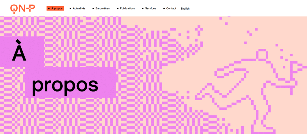 Le design du « P » de QNP illustre notre théorie de changement : l’espace où se conjuguent volonté et capacité d’agir pour le climat, peu importe la fonction occupée au sein des entreprises et de l’écosystème d’affaires – un rappel de notre volonté de propulser l’action climatique des PME et du pouvoir des connexions, des échanges et des actions concertées pour accélérer la transition. Il évoque aussi le pixel, symbole central de notre image.